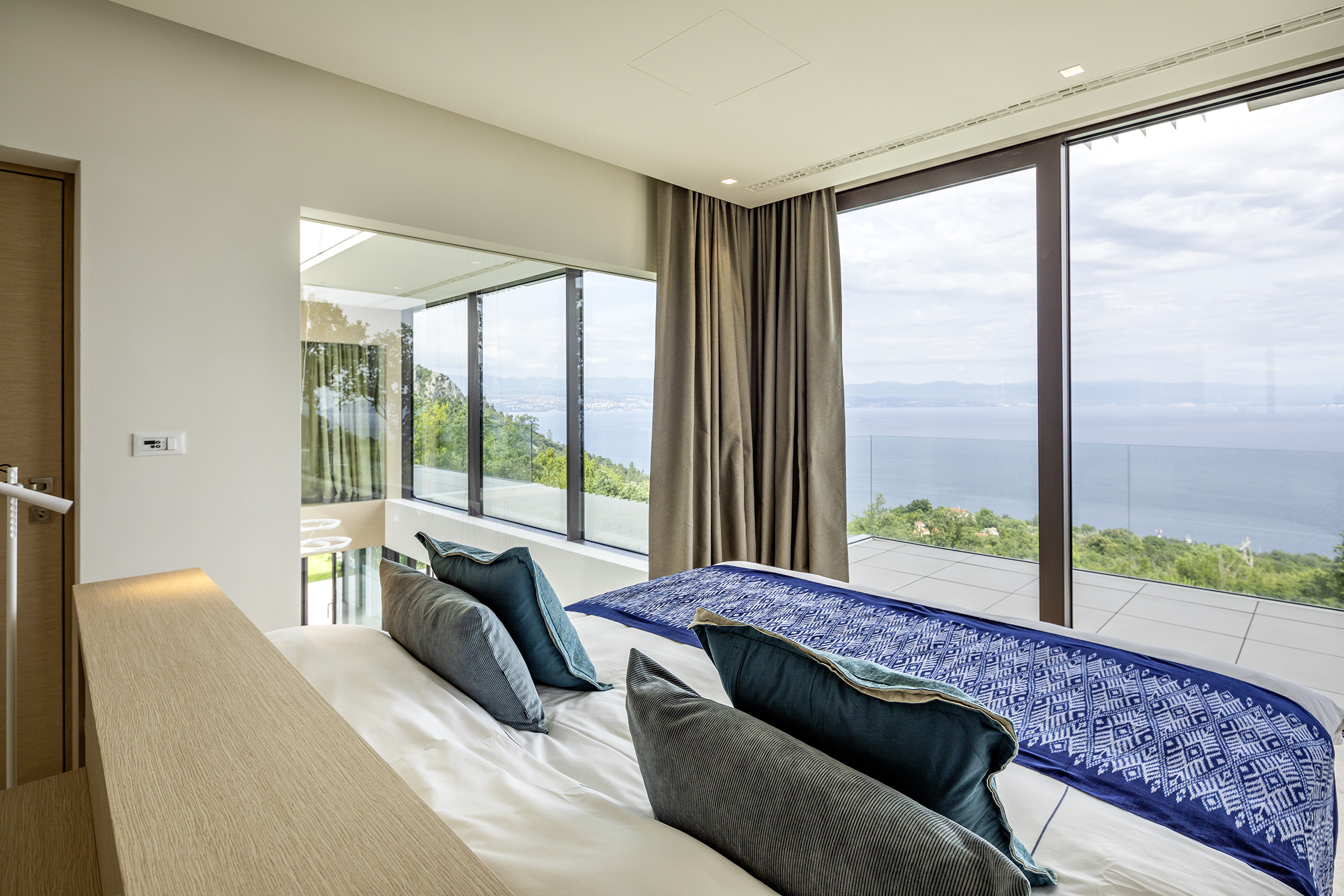 - Double bed room with frontal sea view, balcony and open luxury bathroom with free-standing bathtub